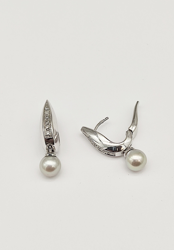 mit Einhänger Perle grau , Scharniercreole mit 0,120ct Brillaten