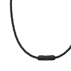 Kette schwarz geflochten Leder, vorn Edelstahlteil