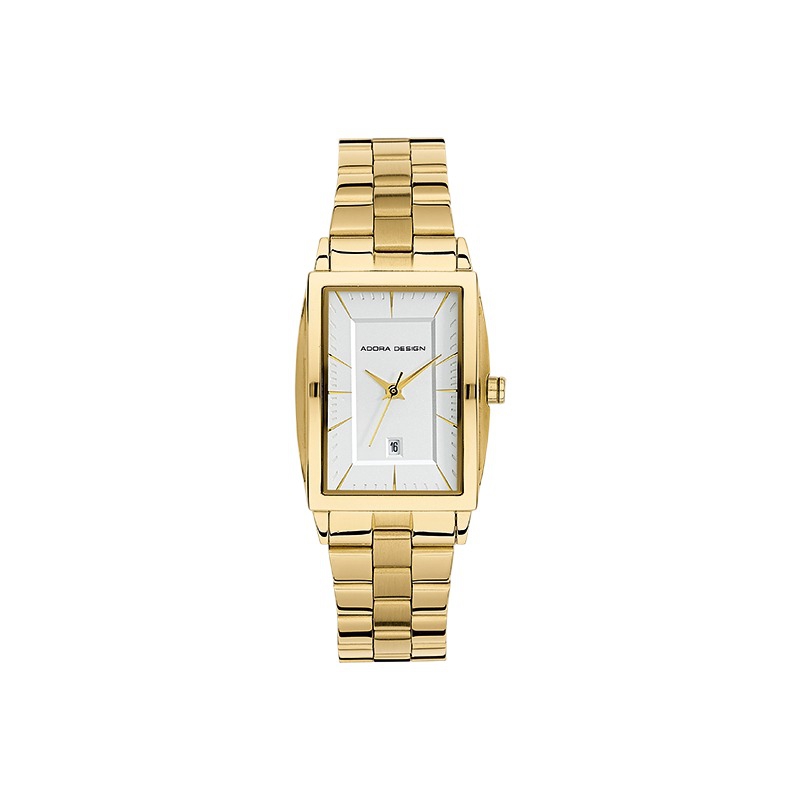Ø30x24mm, eckig  Metallband gelb weißes Zifferblatt, Datum bei 6
