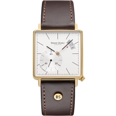 Quarzwerk in veredelter Bruno Söhnle-Ausführung (Ronda 6004.D), Gehäuse Edelstahl ionenplattiert gold, Maße 33 x 33 mm, Höhe 6,5 mm, 3 bar, Saphirglas innen entspiegelt, Kalbslederband, Dornschließe