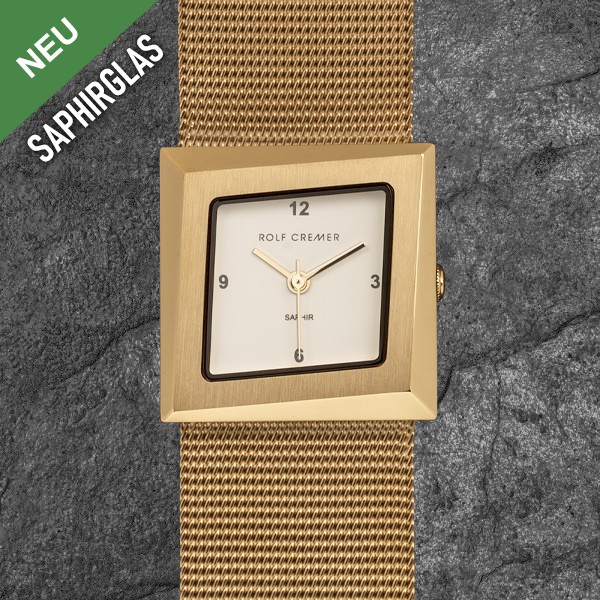 Edelstahl vergoldet, eckig, weißes Zifferblatt asymetrisch , Ø25x25mm
